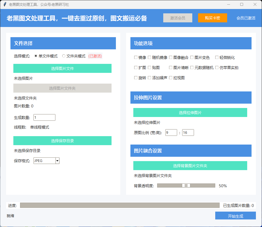 老黑图文处理工具,一键去重过原创,图文搬运必备